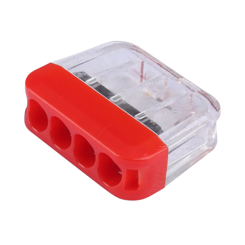 Ang CHTAR 2P 3P 4P 5P 6P 8P Feed-through Wire Quick Connectors na walang levers ay gawa sa UL94 V0 grade PC housing material, Conductive ay gawa sa T2 copper na may Tin plated at spring ay gawa sa S301. Maaari itong konektado sa 0.5-2.5mm2 matibay na mga wire, nagbigay ito ng iba't ibang bilang ng mga butas para sa iba't ibang mga wire na pagpili ng dami. Maaari itong maayos na konektado sa 2 wires hanggang 8 wires . Maaari kaming gumawa ng iba't ibang kulay o pabahay para sa pagpili ng mga customer.