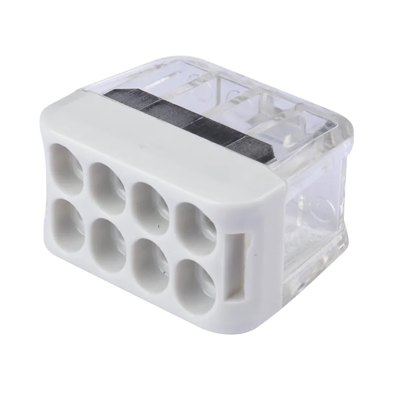 2P 3P 4P 5P 6P 8P Feed-through Wire Quick Connectors na walang mga lever ay ginagamit para sa pag-iilaw at koneksyon ng mga wire ng socket at plug. Ang mga quick wire connectors ay isang ligtas na mga produkto ng koneksyon sa wire, ang pagpapanatili ay madali kaming nakakonekta upang makatipid sa oras ng pagtatrabaho at gastos sa paggawa.