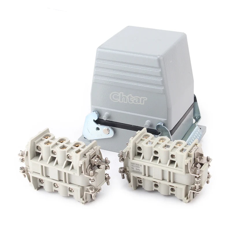 35A 6 Pin Insert Heavy Duty Connector ay gumagana H16B aluminum Housing ng heavy duty connector. Ito ay gawa sa lakas ng materyal na PC at tansong pinilakang pilak . Ang mga pin na tanso ng CHTAR ay nilagyan ng pilak kung ano ang magandang kalidad at mas mahusay na conductivity ng kuryente. Naglalaman ito ng seal na goma upang gawin itong magandang tampok na hindi tinatablan ng tubig.