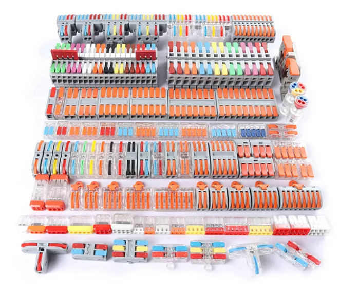 Ang mga classy din rail splicing wire quick connectors ay gawa sa flame-retardant polyamide (PA) o Polycarbonate (PC), ang housing ay sobrang siksik. Maraming variant ang nagtatampok ng mga transparent na window ng inspeksyon upang payagan ang visual na kumpirmasyon ng tamang pagpasok ng wire. Ang mga konektor ng metal inter component ay gawa sa tansong conductive at hindi kinakalawang na asero spring clamp.