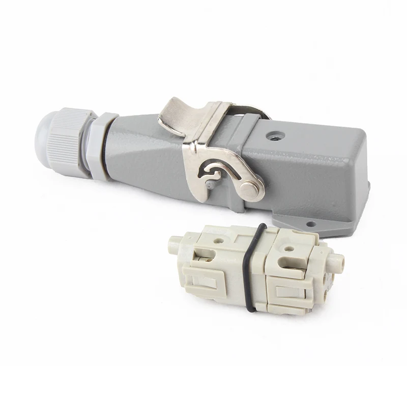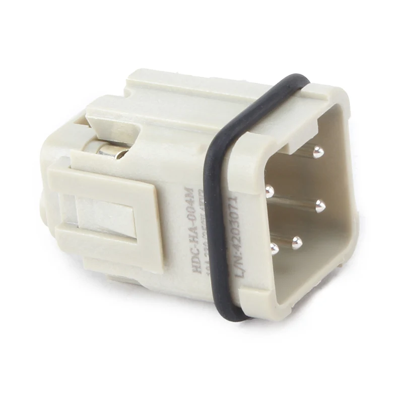 Ito ay gumagana sa 10A H3A-MTG Housing heavy duty connector. Ang M HA 4 Pin Insert Heavy Duty Connector ay gawa sa lakas ng PC material at brass silver-plated . Ang aming mga pin ay nilagyan ng silver, napakagandang kalidad at mas mahusay na electrical conductivity. Ito ay binuo na may seal goma upang gawin itong mas mahusay na hindi tinatablan ng tubig sitwasyon.