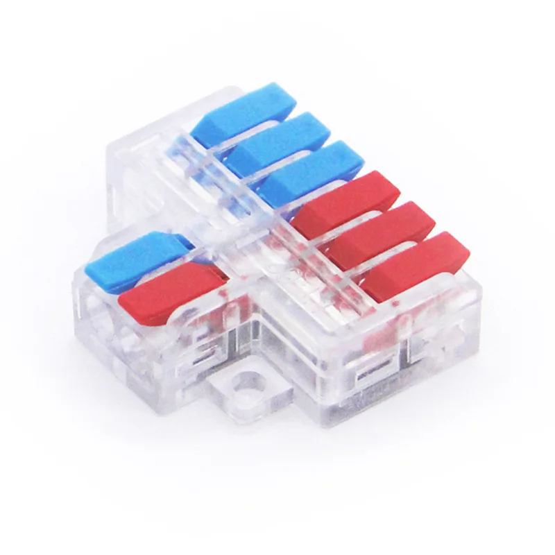 Sa modernong mga sistema ng elektrikal at automation, ang mga ugnayan ng koneksyon ng mga circuit ay nagiging mas kumplikado, at ang mga simpleng parallel na linya o unidirectional na pamamahagi ay hindi na matugunan ang mga hinihingi. Ang mataas na kalidad na Two-in Four-out Splicing Wire Quick Connectors ng CHTAR, na mga multi-wire in at multi-wire out na structure connector, ay makakasagot sa mga isyung ito. Ang laki ng mga wire na kinokonekta nito ay mula 0.5mm² hanggang 6mm². Ang seryeng ito ay nag-uugnay sa mga malalaking wire, na may maximum na 6mm². Mayroong dalawang pagpipilian: 2P at 3P. Ang pangunahing linya ay naka-configure sa 2P at 3P, at pagkatapos ay nagsasanga sa dalawa o tatlong pantulong na linya. Higit pa ito sa iisang function, na nagpapahintulot sa mga inhinyero na makamit ang redundant parallel connection ng dual power supply, independent signal splitting, o convergence at integration ng iba't ibang linya sa isang pisikal na node. Katumbas ito ng pagtatatag ng three-dimensional na hub ng transportasyon sa "sangang-daan" ng circuit, na ginagawang posible ang paghahatid ng enerhiya at mga signal!